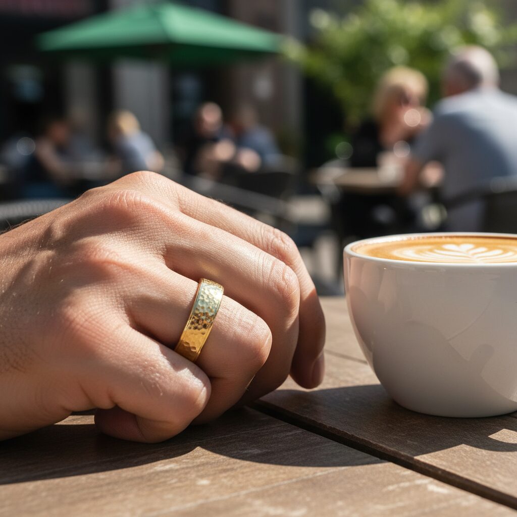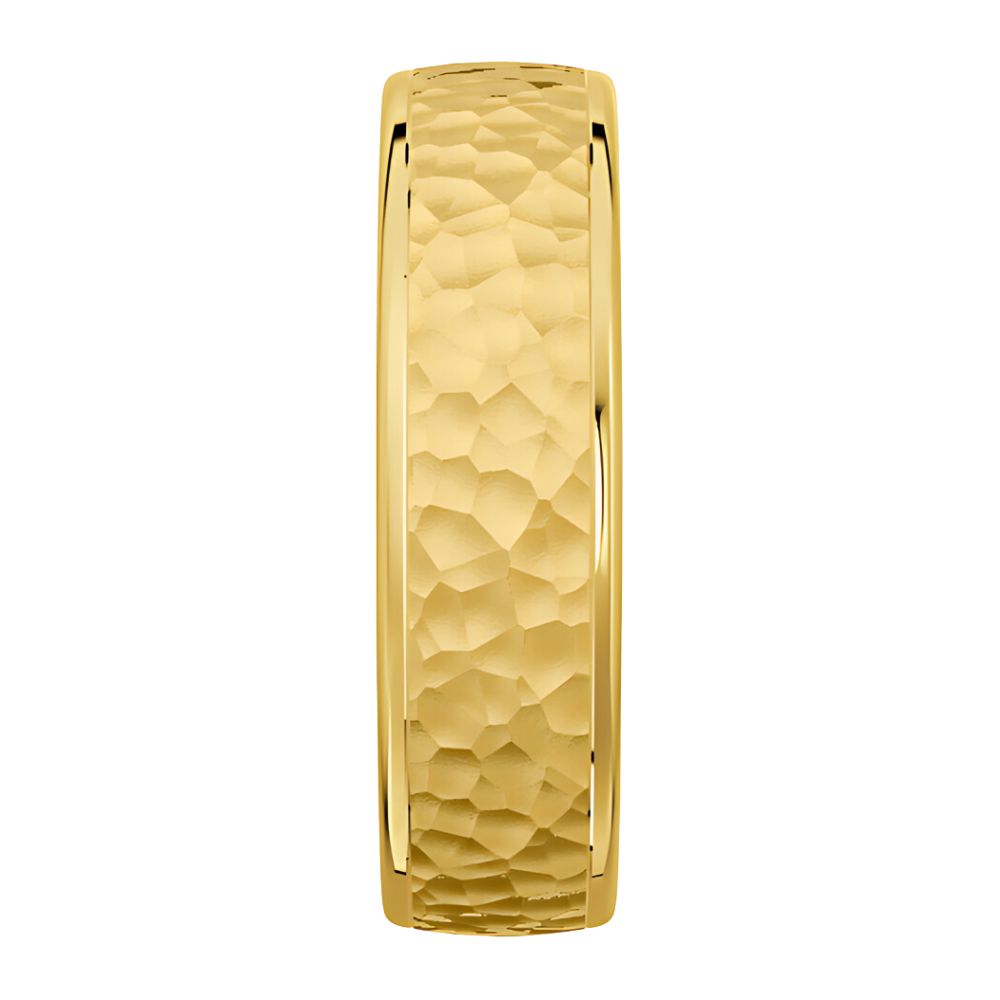 Brilliant Yellow Gold Hammered Mens Wedding Ring