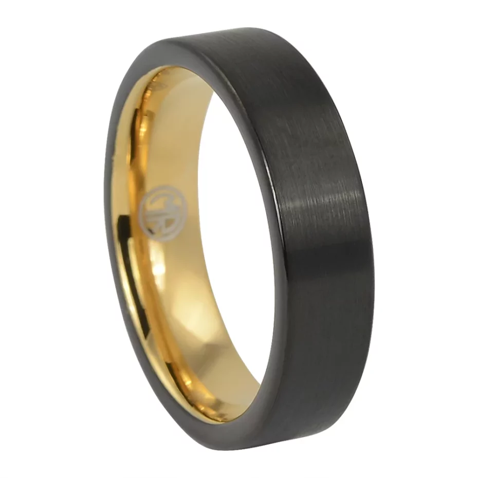 Tungsten carbide ring with gold-tone accents. The tungsten base gives the band its strength and everyday durability, while the contrasting details are framed as accents, inlays or finish elements rather than the core material. Comfortable to wear daily with a clean modern look.