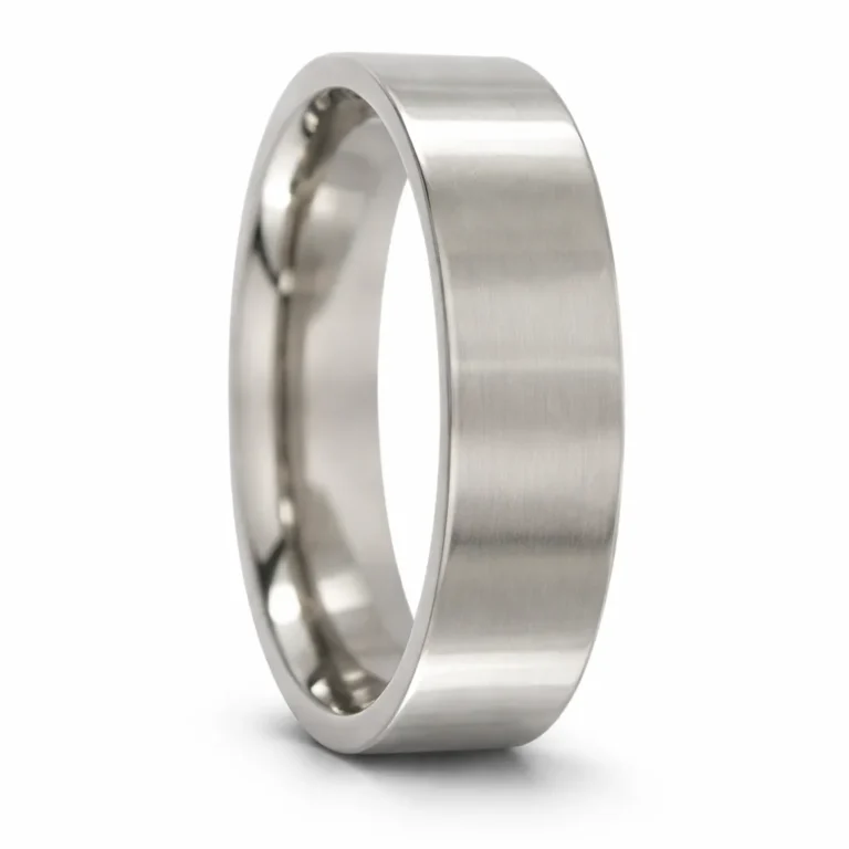 Built tough for the bloke who doesn't baby his gear. This titanium ring is aircraft-grade lightweight — you'll barely notice it on your finger at the end of a long shift. Titanium rates extremely hard, so it won't scratch up easily from tools or concrete. The hypoallergenic finish suits blokes with sensitive skin who've had trouble with other metals. This one comes in a 6mm width — Comfort-fit band makes it easy to slide on and off after a sweaty day. Good choice for tradies, outdoor workers, and anyone who wants a ring that just works without fussing over it.