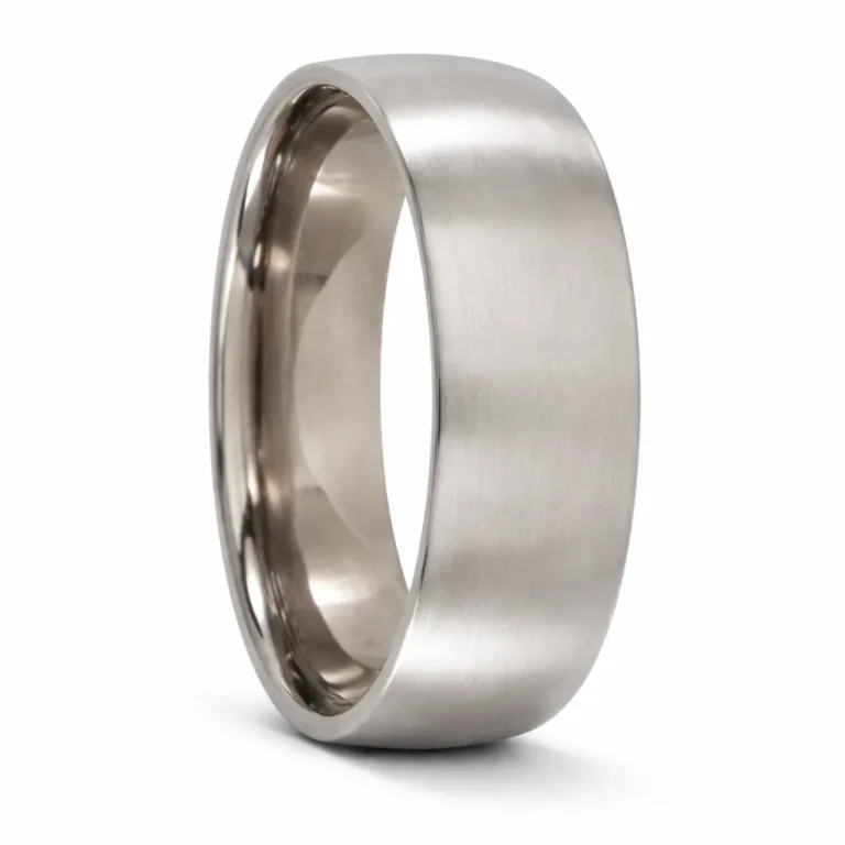 This titanium band is the low-maintenance option for blokes who'd rather not think about their ring. Titanium is incredibly hard-wearing — it handles the workshop, the gym, and the outdoors without complaint. Won't corrode, won't tarnish, and if you've got skin allergies, titanium is naturally hypoallergenic. This one comes in a 7mm width — Lightweight and strong, it sits comfortably through a full day's work. No special cleaning, no polishing ritual. Just put it on and forget about it.