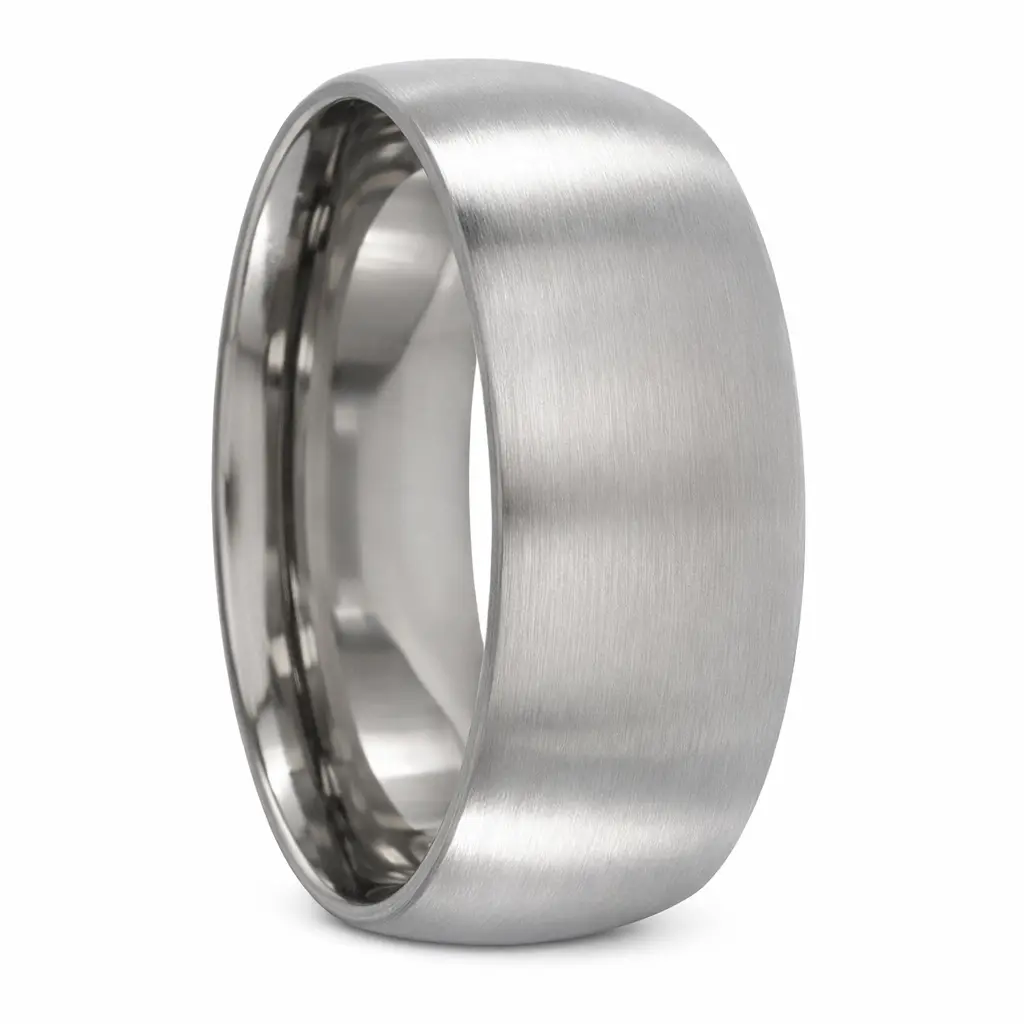 Custom 8mm Brushed Half Round Titanium Mens Wedding Band