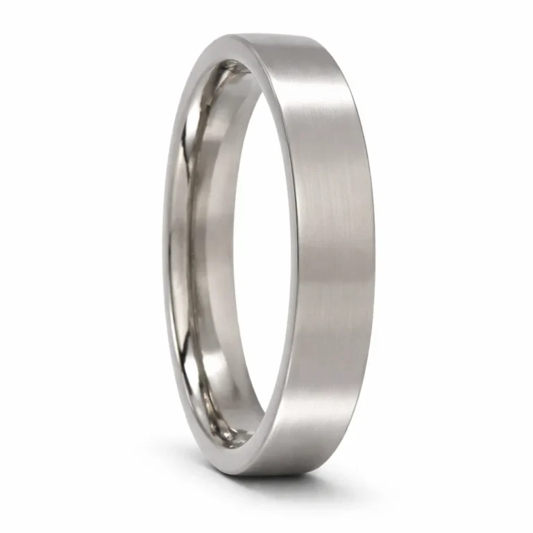 This titanium band is the low-maintenance option for blokes who'd rather not think about their ring. Titanium is incredibly hard-wearing — it handles the workshop, the gym, and the outdoors without complaint. Won't corrode, won't tarnish, and if you've got skin allergies, titanium is naturally hypoallergenic. This one comes in a 4mm width — Lightweight and strong, it sits comfortably through a full day's work. No special cleaning, no polishing ritual. Just put it on and forget about it.