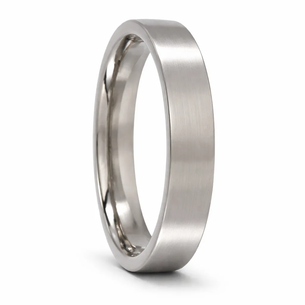 Custom Made 4mm Brushed Flat Titanium Mens Wedding Ring