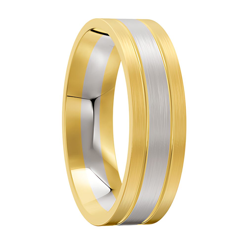 Command attention with Mr Viper, a bold yellow and white gold wedding ring featuring a brushed center and polished yellow gold edges for a striking contrast. Designed for the modern man who appreciates a blend of power and sophistication, this ring is sharp, stylish, and impossible to ignore.