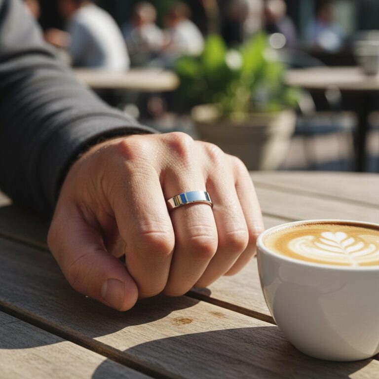 Platinum is the premium end of men's wedding rings — it's the densest of the precious metals and the most durable. It doesn't tarnish, doesn't corrode, and is naturally hypoallergenic. Over time, platinum develops a patina rather than losing material — scratches push the metal rather than removing it, so the ring keeps its weight and integrity indefinitely. If you want a precious metal ring built to last generations and you're happy with the investment, platinum is the honest choice. Heavier and more substantial than gold.