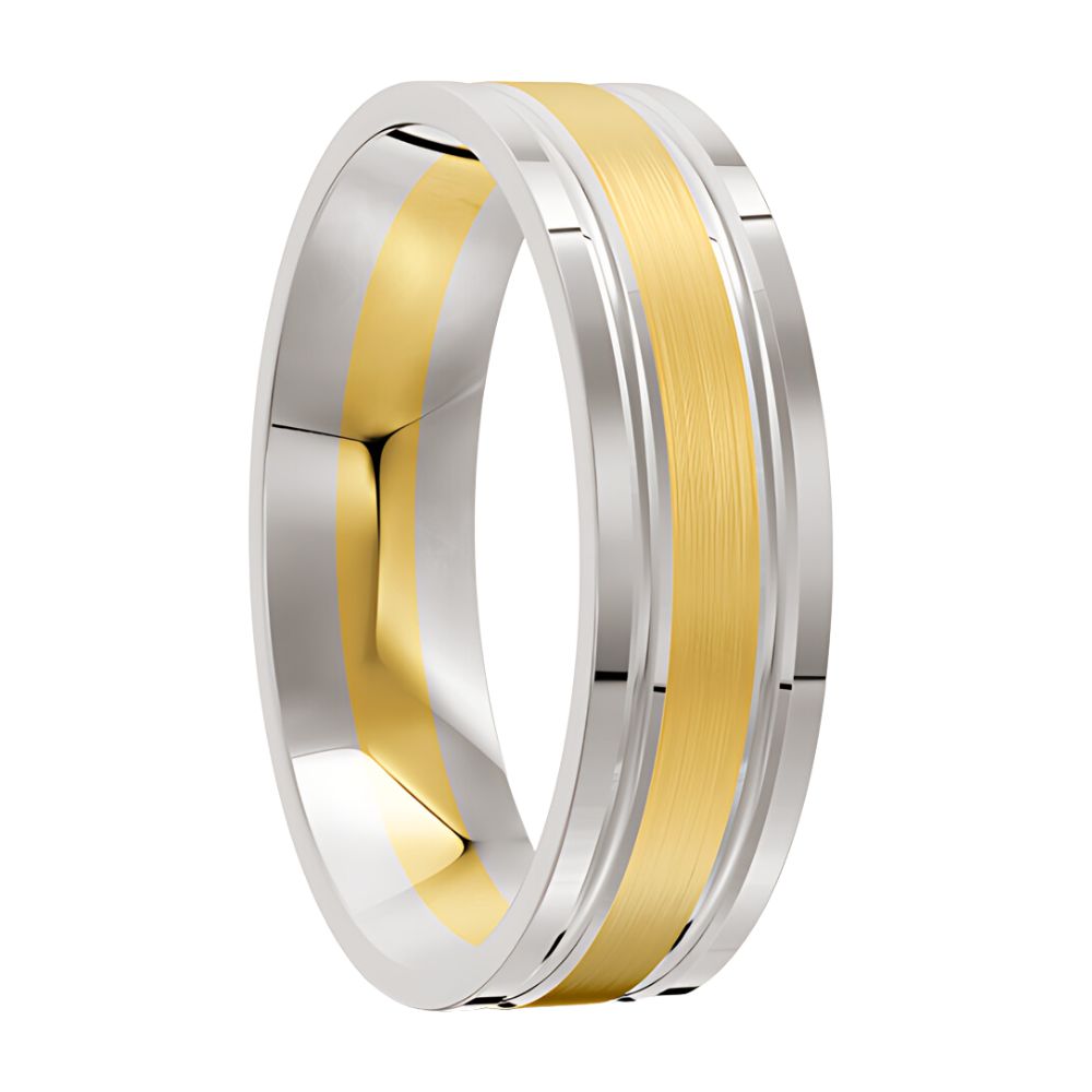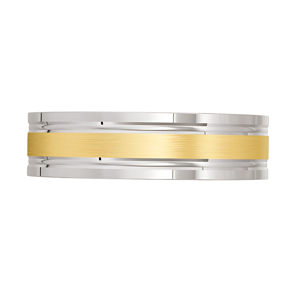 ✔ Finish: Brushed yellow gold centerline with polished white gold edges for a high-contrast, modern look.