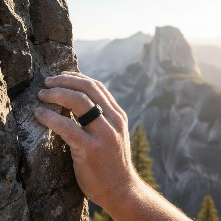 Designed to tear at ~25kg of pull-force — well below what degloves a finger. Tradies, electricians, climbers: this is the ring you wear when the metal one comes off.