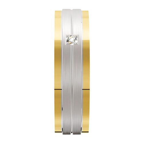 White and Yellow Gold Brushed Mens Wedding Ring