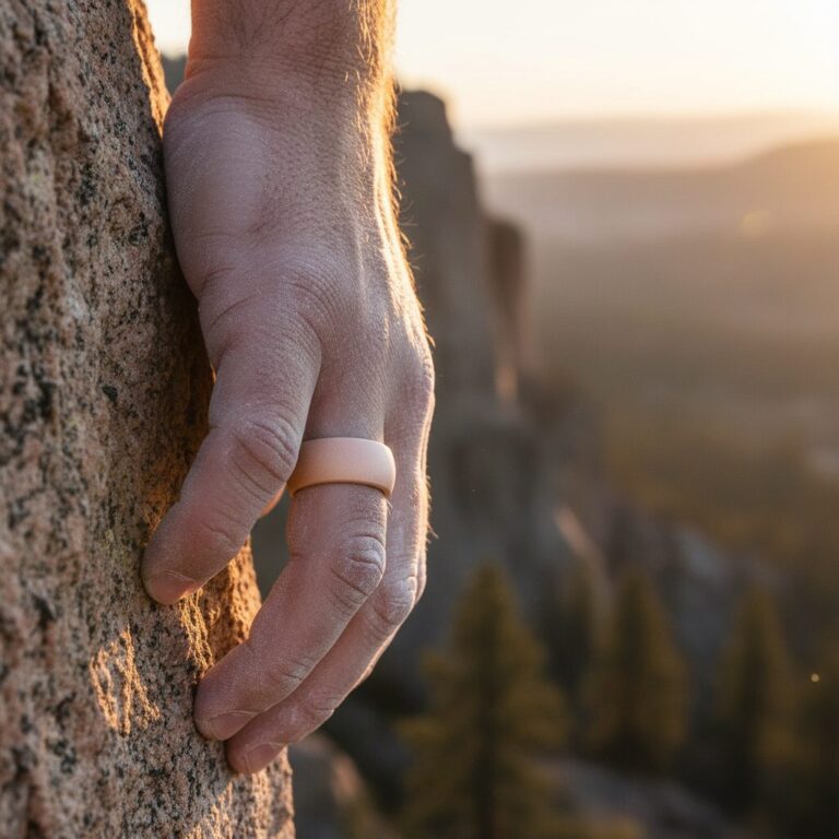 Designed to tear at ~25kg of pull-force — well below what degloves a finger. Tradies, electricians, climbers: this is the ring you wear when the metal one comes off.
