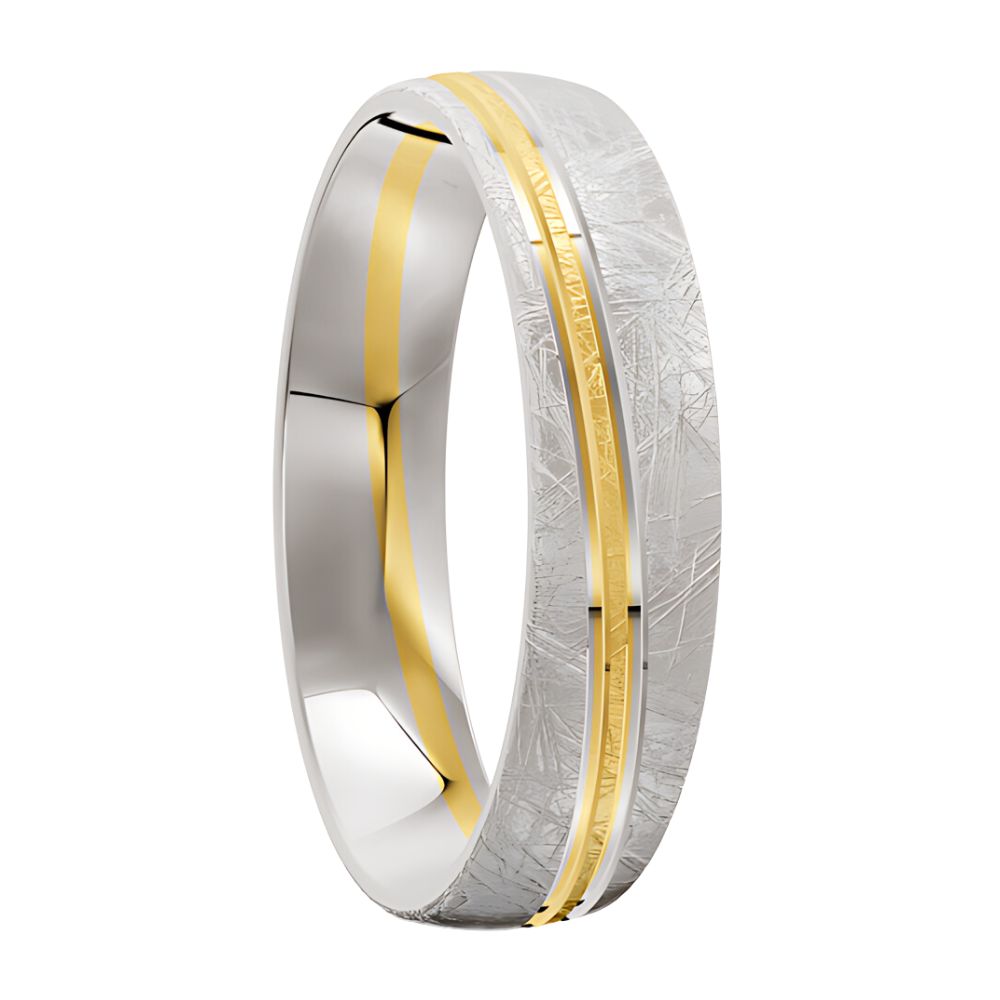 Matte White Gold Men’s Wedding Ring with Yellow Gold Grooves