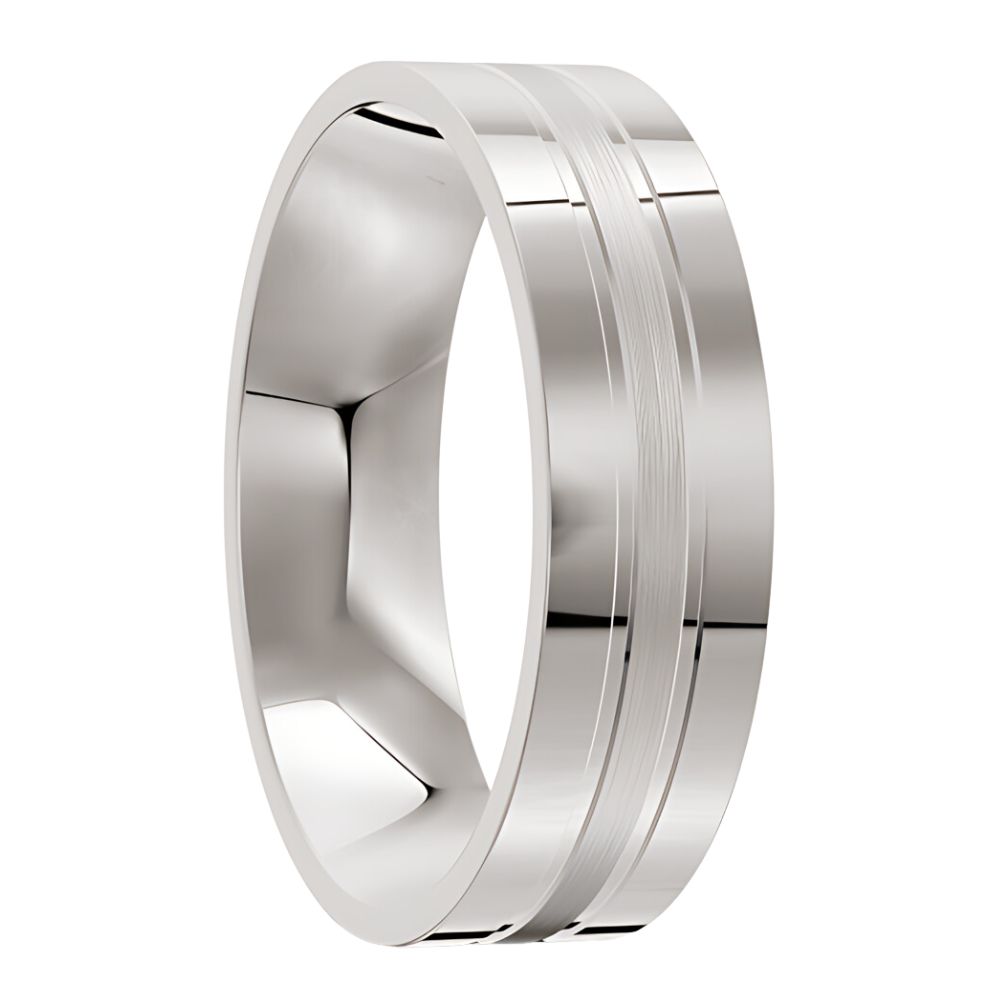 White Gold Polished and Brushed Mens Wedding Ring