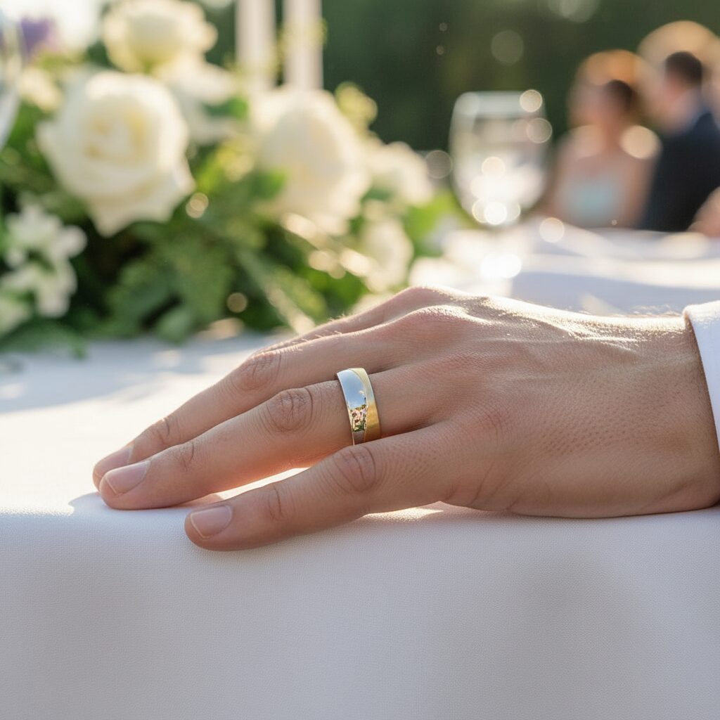 Yellow and White Gold Unique Curved Mens Wedding Ring